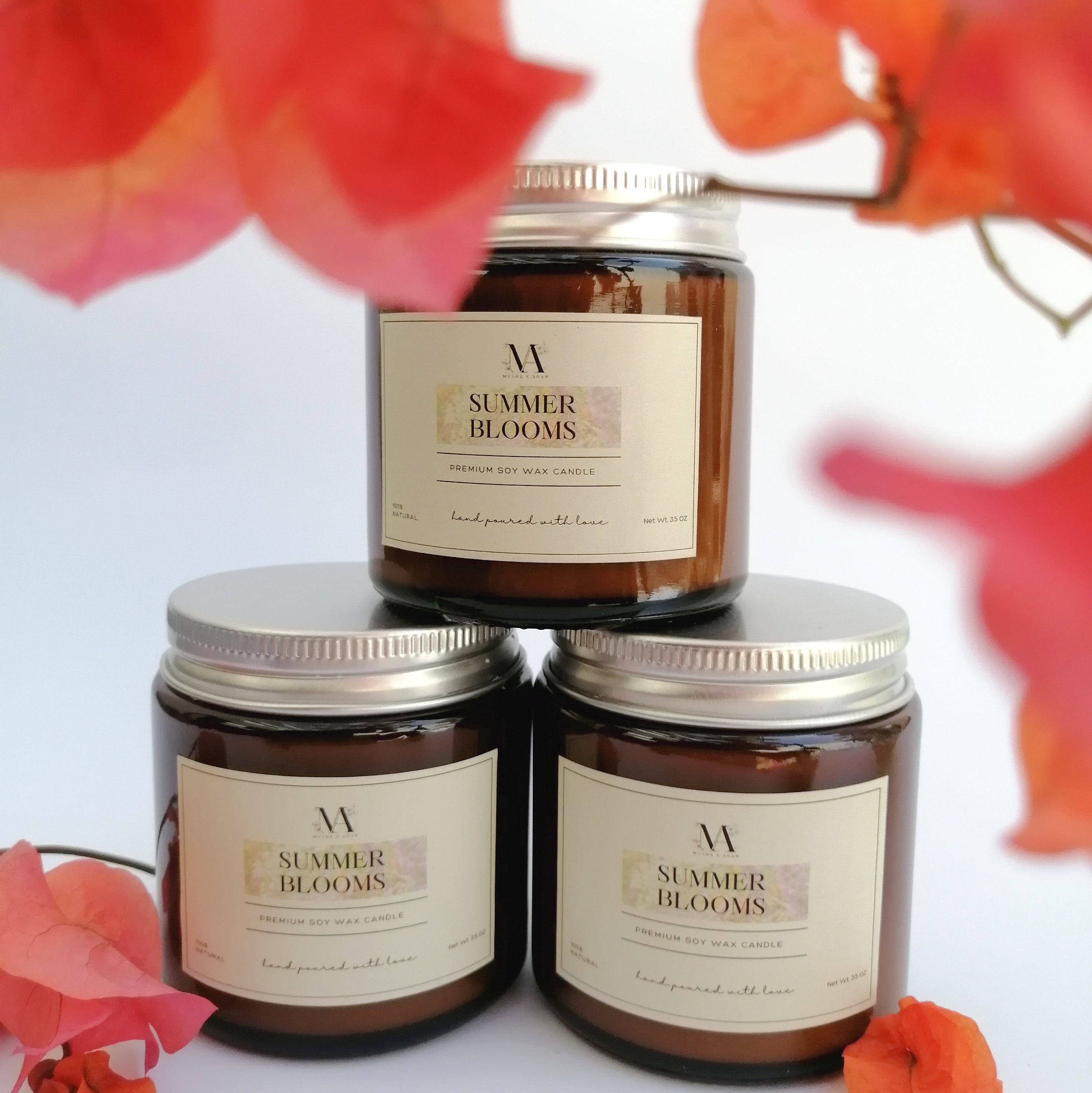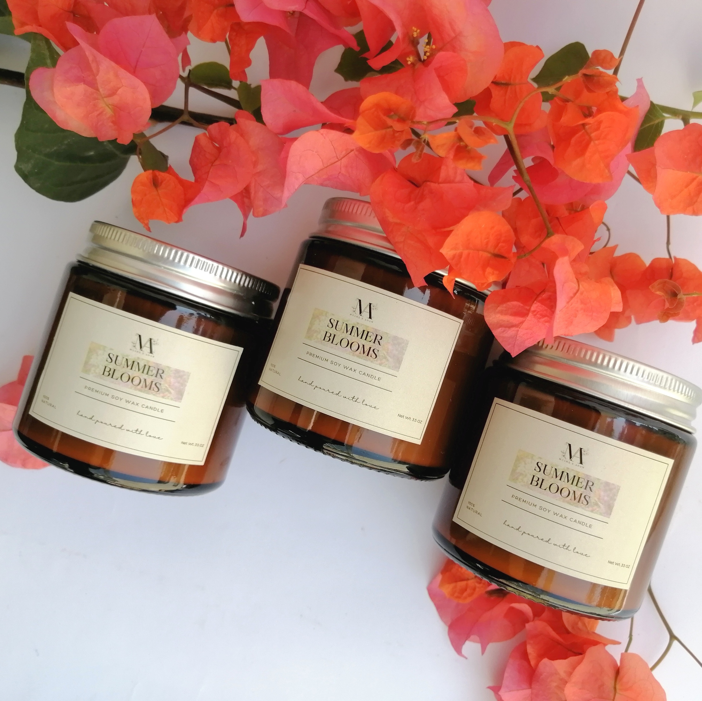 Summer Blooms is a refreshing scented candle that captures the essence of a vibrant summer garden. It opens with bright top notes of a fresh floral bouquet and green foliage, creating an uplifting and invigorating first impression. The heart of the fragrance is a soothing blend of lavender fields and oakwood, offering a calming and natural floral experience. The base notes of earthy moss and musk provide a warm, grounding finish that lingers gently, adding depth and complexity to the scent. This candle is perfect for bringing a fresh, inviting, and serene atmosphere to your home.