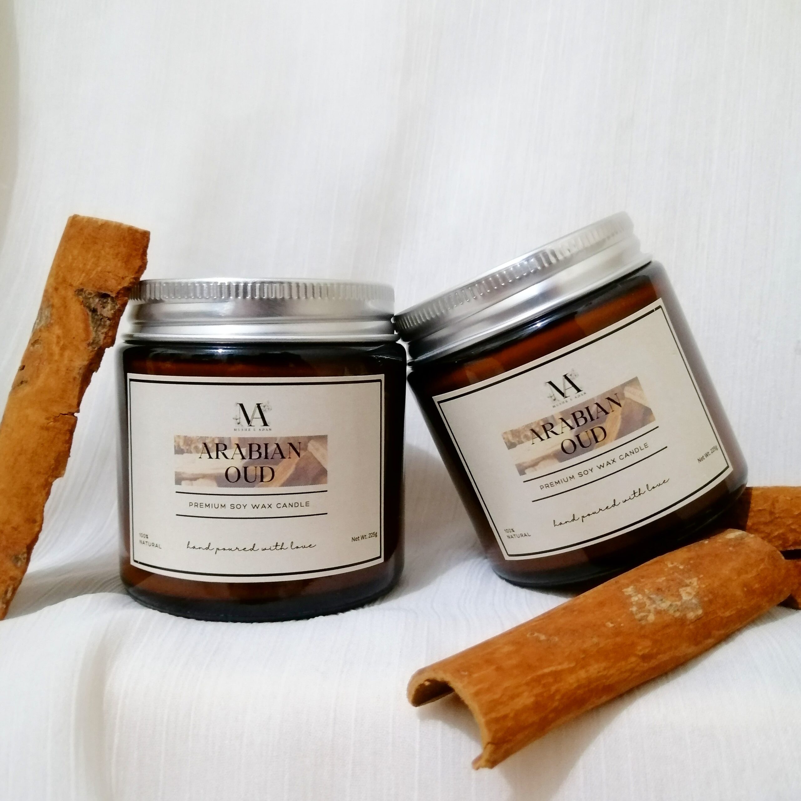 Arabian Oud is a luxurious and captivating scented candle that embodies the rich and opulent spirit of the Middle East. It opens with exotic top notes of patchouli, rose, and saffron, offering a warm and spicy floral introduction. The heart reveals a deep, resinous blend of sandalwood and incense, creating a mystical and soothing aroma. Finally, the base notes of cedar and wood provide a robust, earthy foundation that lingers elegantly, evoking the timeless allure of Arabian oud traditions.